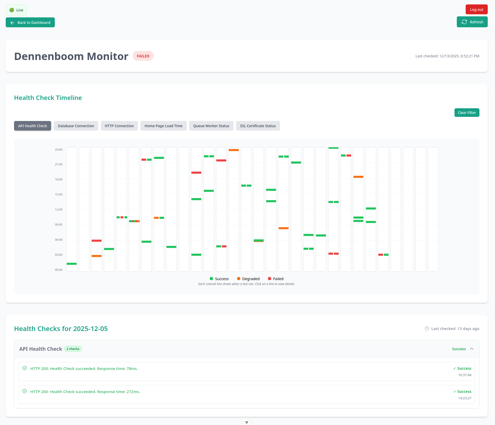 - De backend voert elk uur een healthcheck uit via een cronjob